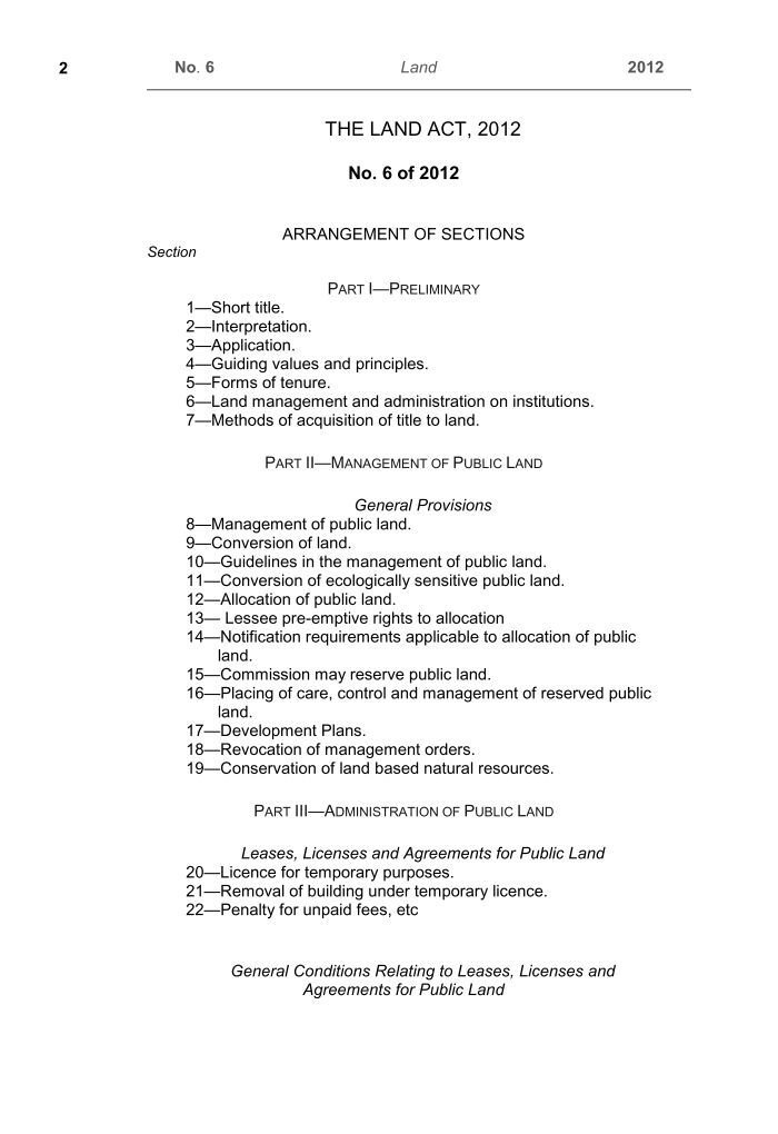 1. Land Act, 2012 (No. 6 of 2012)