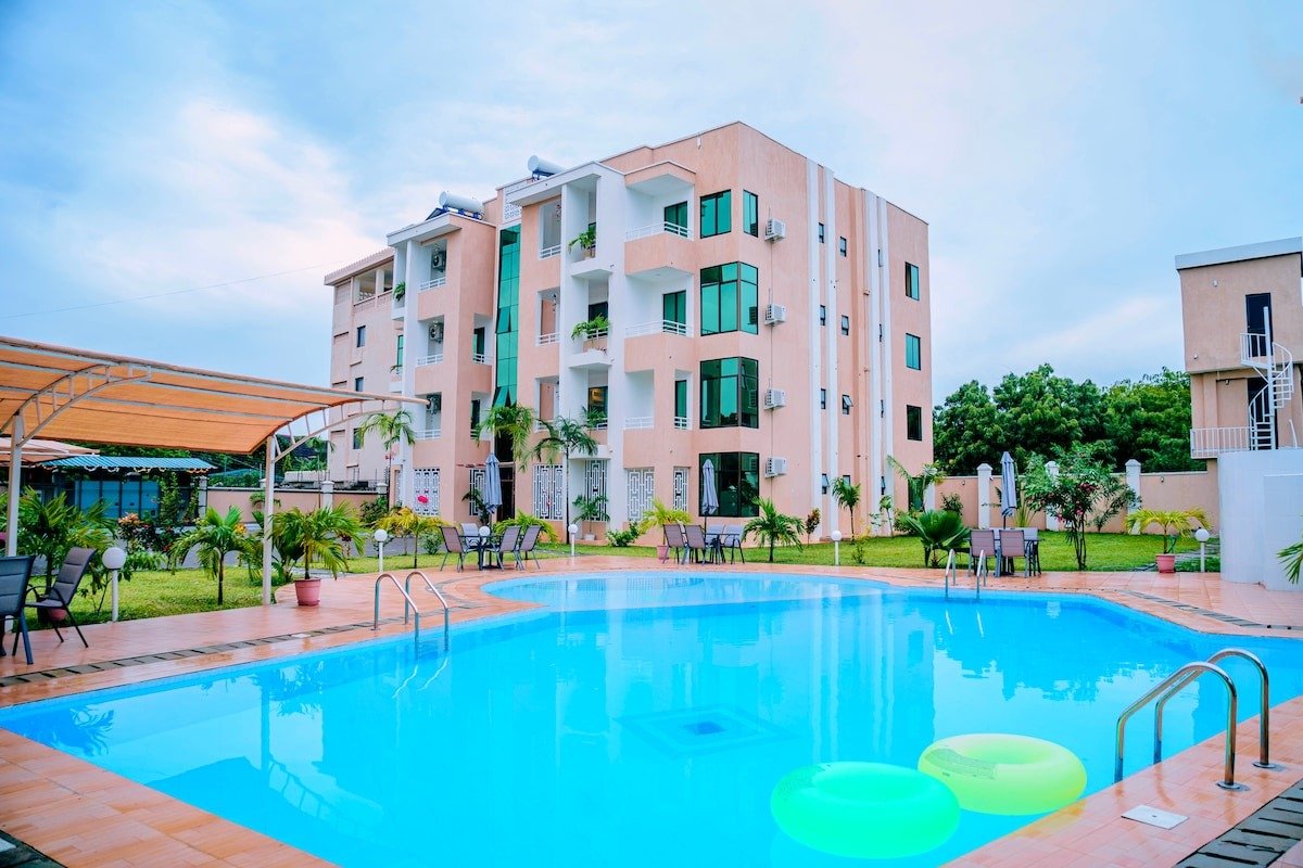 Access to a serene swimming pool, sun loungers, and beautifully landscaped gardens