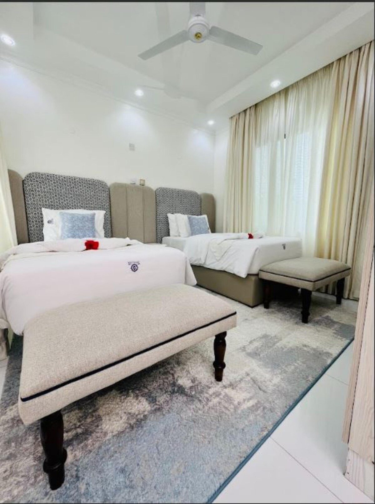 Spacious, air-conditioned suite with a king-sized bed and elegant coastal-inspired décor