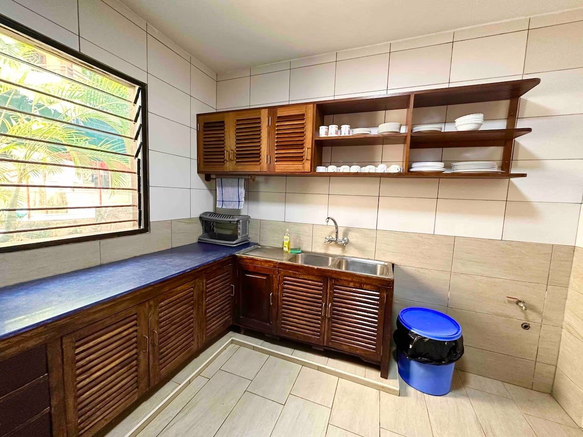 It’s a one bedroom apartment with a master bedroom have an air condition and a one extra double bed have an overhead fan completed bathroom.