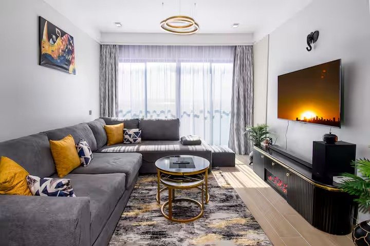 Enjoy comfort and style in this serviced 1-bedroom apartment at Leo Residences, located in Nairobi’s Lavington area. The apartment features a spacious living area, fully equipped kitchen, cozy bedroom with premium linens, and a modern bathroom. Enjoy amenities like high-speed WiFi, gym, 24-hour security, and easy access to shopping and dining at nearby malls. Ideal for both business and leisure stays.