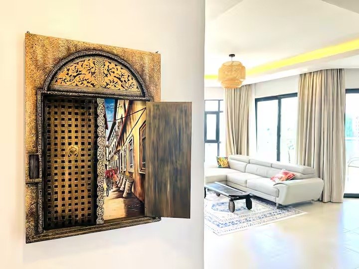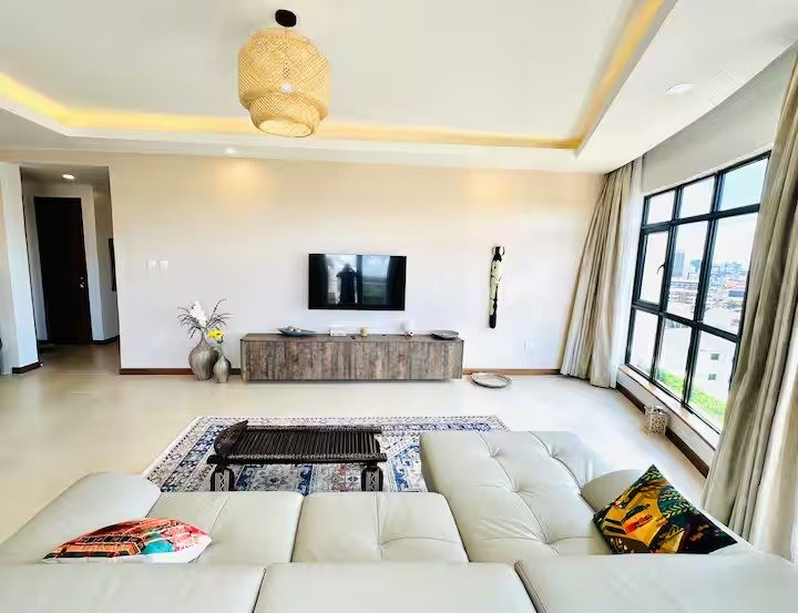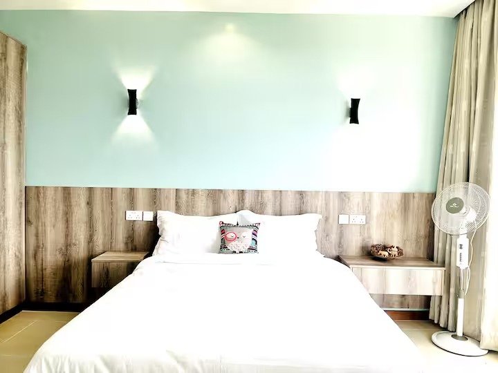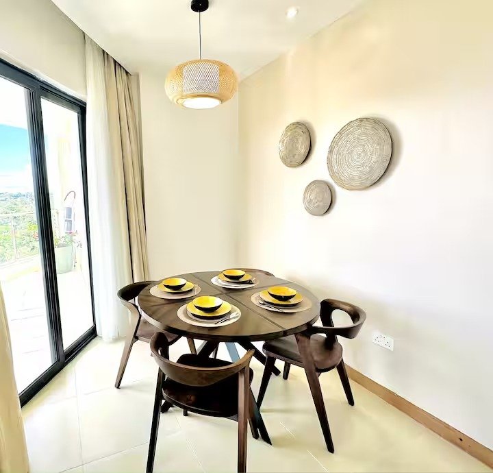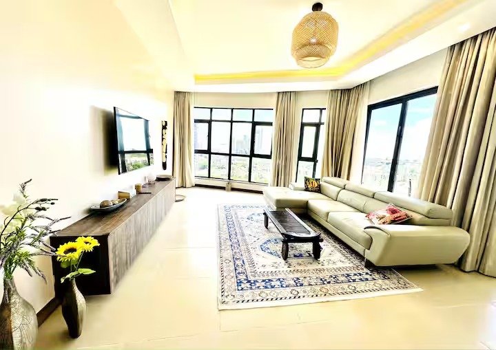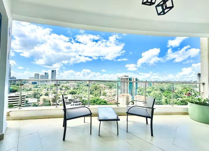 Our spacious serviced apartment comes with a master bedroom with 270 degrees stunning city view, complete with an ensuite bathroom and a guest bathroom, overall perfect for a couple or solo traveller. The fully fitted kitchen is equipped with everything you need to prepare meals and the dining table is perfect for enjoying them. The living area features a comfortable seating area and a 55-inch smart TV, perfect for relaxing after a long day of exploring Nairobi. The balcony provides great views of the skyline and is the perfect place to enjoy a cup of coffee or take in the sunrise. All rooms are well-lit with natural light and are designed to offer superb ventilation, ensuring you’ll be comfortable throughout your stay.
