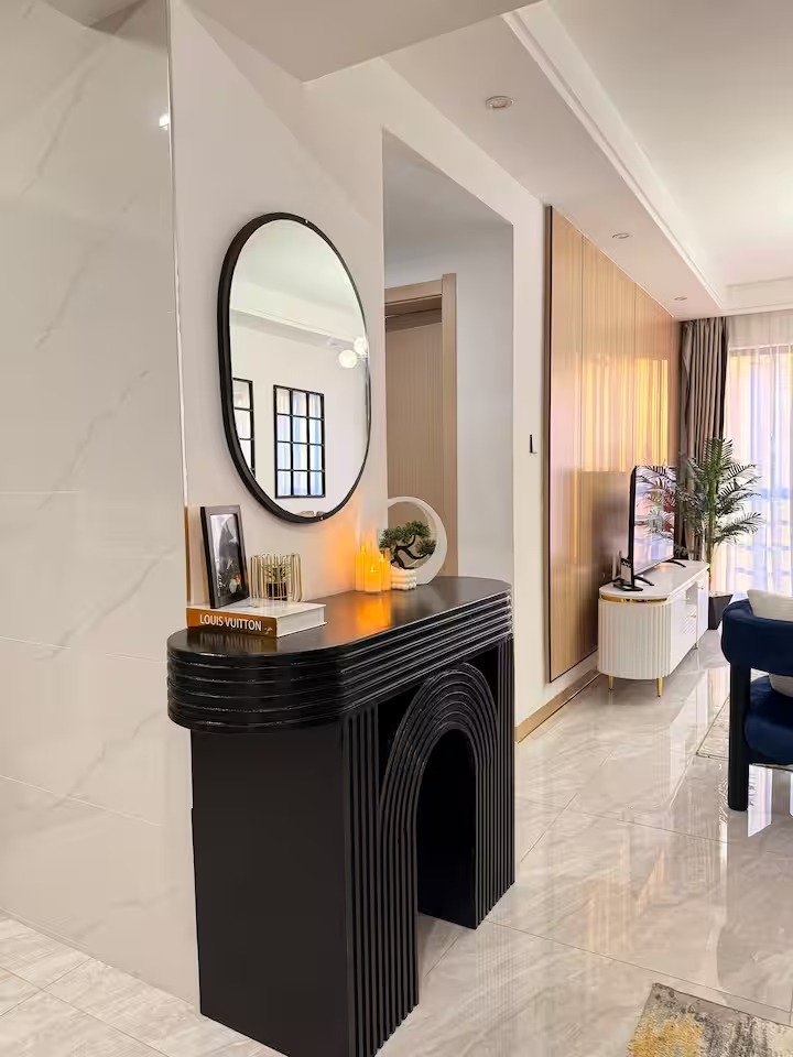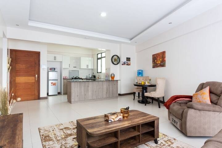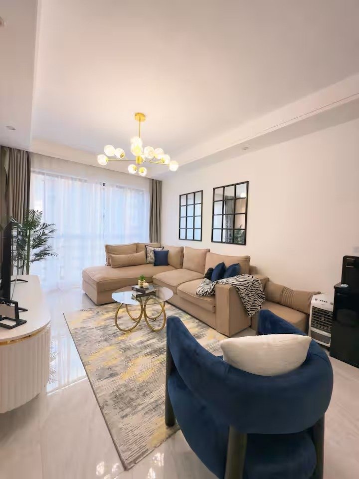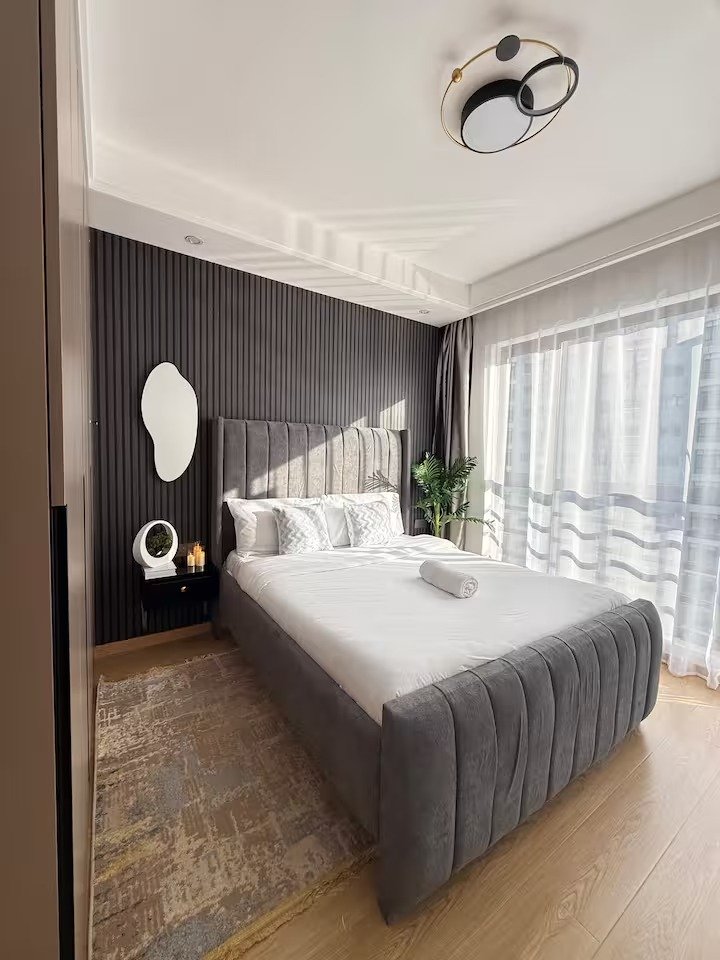 One bedroom apartment that is well ventilated and perfect lighting because of the big and beautiful windows. Enjoy a cup of coffee as you admire the beautiful night life of Nairobi.