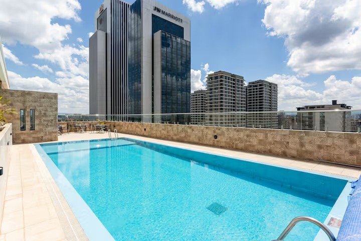 Enjoy a luxurious, high-rise, rooftop pool experience at this fully furnished, 1 bed/1bath skyline unit in Westlands, one of Nairobi’s most exciting areas to dine, shop, and stay.