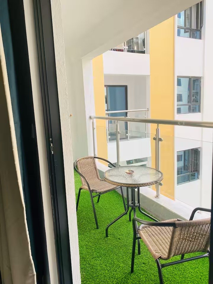 Enjoy your stay in this 1B apartment. There is a bedroom with kingsize-bed, a fully equiped kitchen, a cozy living room with a sofa with bed function and a spacious balcony . The apartment is located in a calm residential area and with a good connection to the city centre. The pool and fitness area is open for the guests.