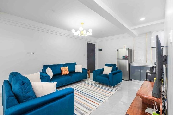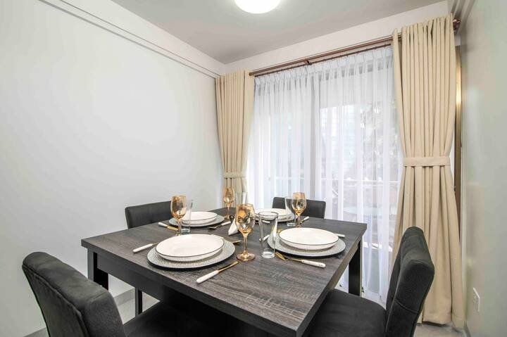 Enjoy a stylish experience at this centrally-located place as you Indulge in our luxurious 1-bedroom apartment in the heart of Yaya Center. Has an opulent living space with high-end furnishings, a fully-equipped gourmet kitchenette and modern electronics e.g. a 55′ TV.After exploring the city, retreat to your tranquil bedroom with a King-sized bed. Its bathroom is perfect for unwinding. The balcony has stunning city views, ideal for a peaceful romantic evening and Perfect for a business trip.