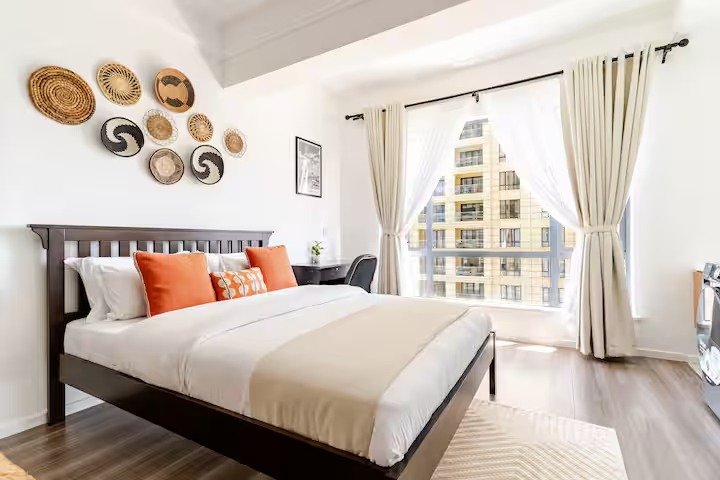 Enjoy access to premium amenities including a gym, swimming pool, rock climbing wall, supermarket and kids’ play area. Free Secure parking and 24/7 security ensure a worry-free stay.