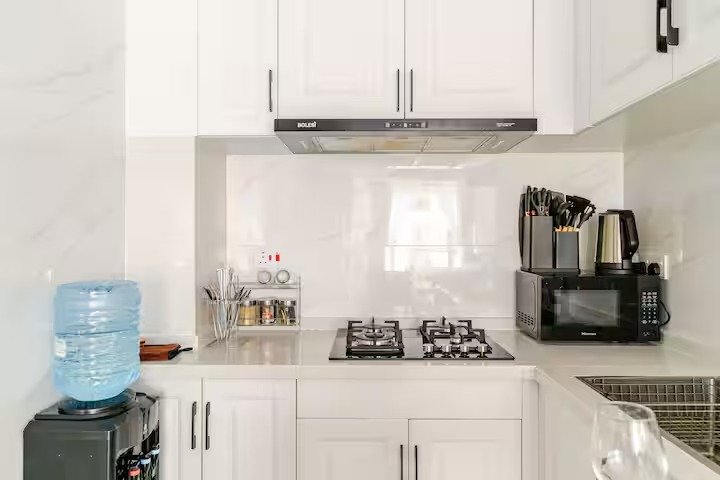 Perfect for both business and leisure, this modern retreat offers a fully equipped kitchen, a spacious living area, and a comfortable bedroom with a plush queen bed.
