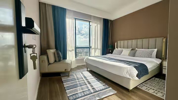 Relax in this bright and modern 1-bedroom apartment on the 18th (top) floor. Enjoy beautiful skyline views, a comfy bed, full kitchen, clean bathroom, fast Wi-Fi, and in-unit laundry. Quiet, private, and perfect for work or a getaway. Access to building amenities like gym/pool.