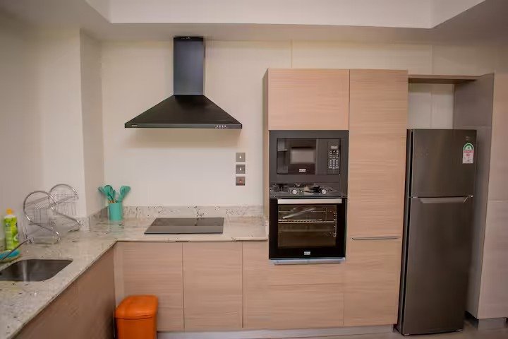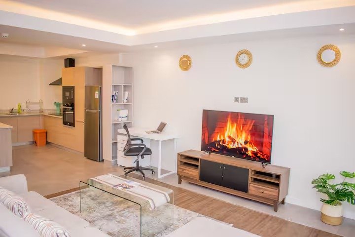 This Entire Apartment is modern, spacious & comfortable, with one bedroom & en-suite bathroom, luxurious Queen size bed, eloquent dining room, bedroom & lounge Netflix-TV, balcony, kitchen and washing machine area. All amenities provided, including unlimited Fast WiFi and business facilities. Situated in a quiet leafy suburb, but also conveniently close to Westgate, Sarit and Lavington shopping malls, restaurants, business hubs, CBD and few meters walk away from Westlands nightlife.