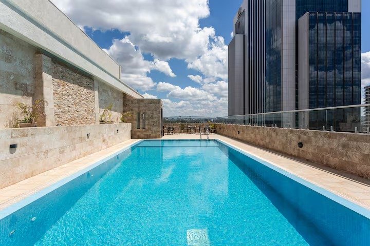 This stylish and sunlit apartment is on the 5th floor of a UN security-approved building in Westlands, near Nairobi Global Trade Centre, the National Museum, Broadwalk Mall, and a variety of restaurants. Enjoy a sunny, private balcony, rooftop pool, and modern gym. Perfect for solo travelers or couples, it includes free Wi-Fi and a smart TV. The building has well-maintained elevators for easy access, and JKIA Airport is easily reached via the expressway.