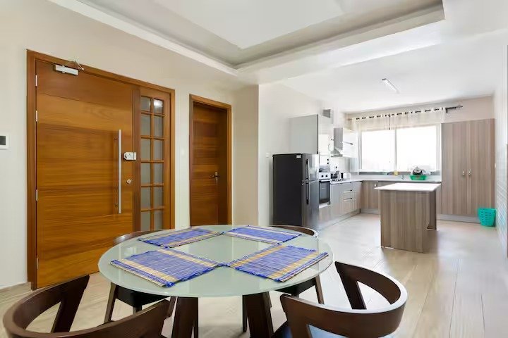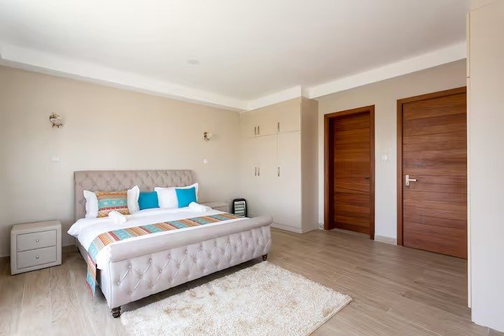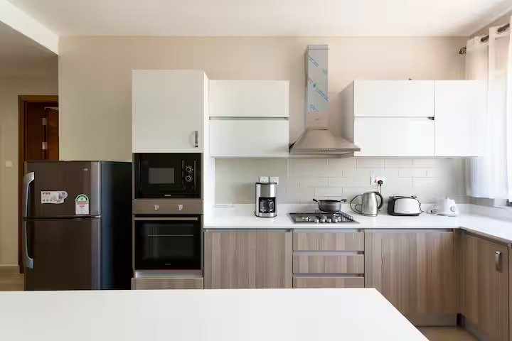 The 1 bedroom all ensuite offers a Smart Tv with Local Channels and High speed internet. The furniture is high end and offers for comfort Family or Business Travellers. The Utility area is fitted with Solar/ Electric Heater for 24/7 hot water supply. It also comes with a washer/dryer washing machine. The Kitchen comes fully fitted with German cooker, stove and microwave. The Master bedroom is fitted with a safe for valuables and passports. The Toilets have Soap, Shampoo and Body Lotion. The property is the best pick in Kilimani.