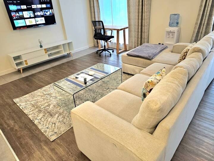 We offer exquisite living experience with a tasteful ambiance to reflect modern living A spacious, modern, 1-bedroom ( Master bedroom en suite) apartment in Westlands, Nairobi, Kenya featuring 1 king-sized bed. A short ride from Jomo Kenyatta Int. Airport ( 11.9 Km ). A fully equipped kitchen, laundry area, the living room has a balcony to enjoy the evening sky. 2 parking spaces and parking space for the guest the electric fence that upholds security for peace of mind