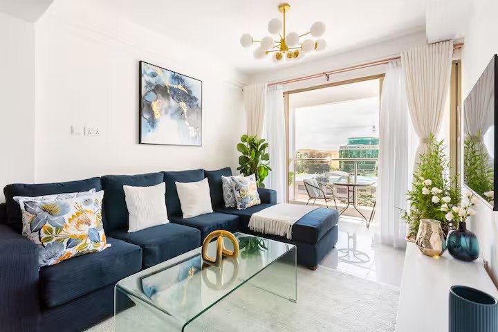 Stay in the heart of Kilimani at this bright and stylish 1-bedroom ensuite apartment, ideal for both short-term and long-term stays. Perfect for business travelers, couples, or solo guests, the space is thoughtfully designed with a King-size orthopedic bed, blackout curtains, a smart TV, fast Wi-Fi, and a fully equipped kitchen. Floor-to-ceiling windows and a wide balcony invite in natural light and city views, creating a calm and airy atmosphere.