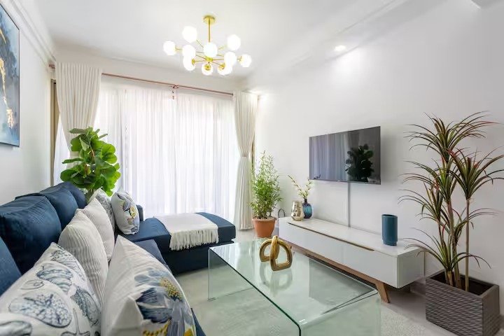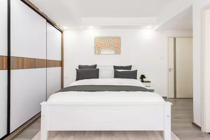 Rest on a plush king-size bed for great comfort. Features smart TV, fully equipped kitchen, fast Wi-Fi, 24/7 security, free parking, and gym.