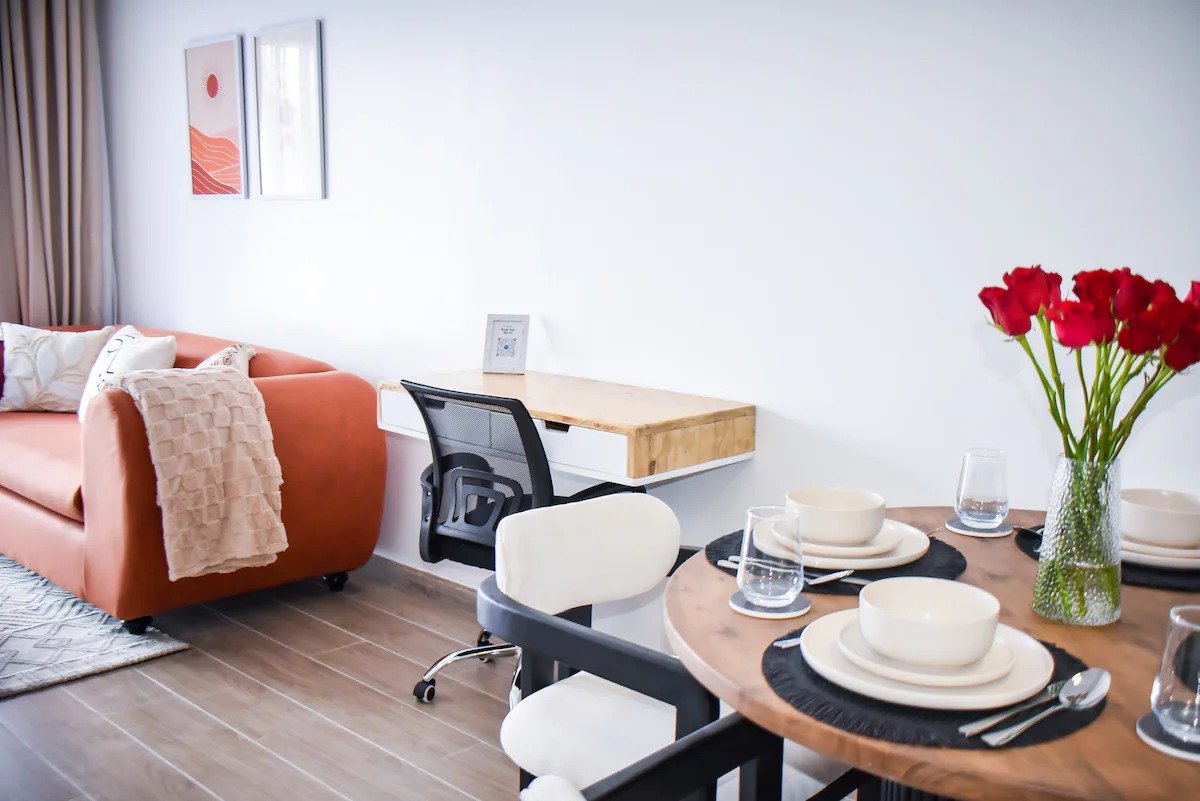 Tucked away in the heart of Kilimani, this 1-bedroom apartment is your cozy corner of Nairobi. Think lazy mornings on the balcony with coffee, movie nights on the couch, a comfy bed you won’t want to leave, and a quiet study area for when you need to get things done.