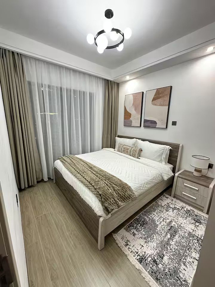 • Spacious bedroom with a plush queen-size bed and ample storage