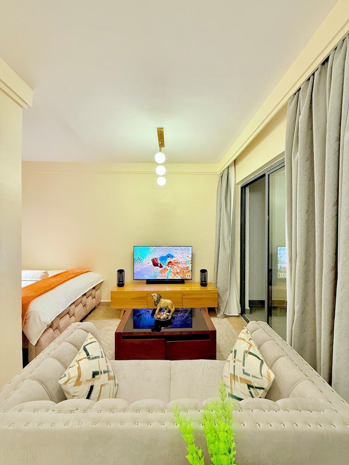 Relax at this unique and peaceful 1 bed retreat. It is a brand new 1 bed apartment clean with a queen bed. Its equipped with excellent hot shower, comfortable modern couch and high speed internet. You will find a well equipped kitchen, minimalistic concept, game park view and awesome city views