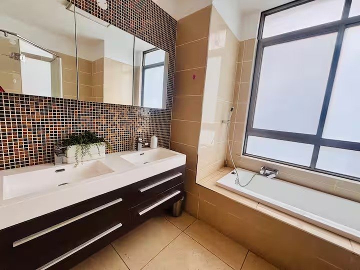 A bright and well-furnished space with a comfy double bed, fresh linens, wardrobe, bathtub, reading lights, and a large window balcony letting in plenty of natural light. Whether you’re working remotely or just relaxing, this room is designed for rest and privacy.
