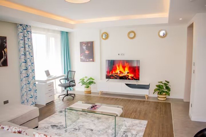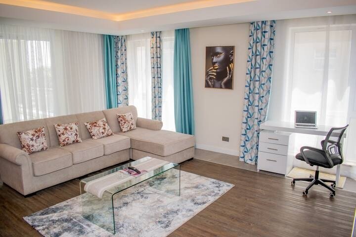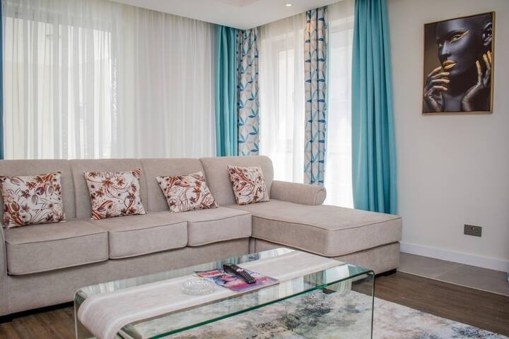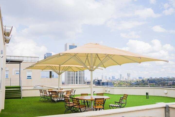 The breathtaking views through the ceiling to floor glass windows welcomes a zen mood from either bedrooms or the living area. On a clear day you get to see the infamous wind turbines on Ngong Hills.