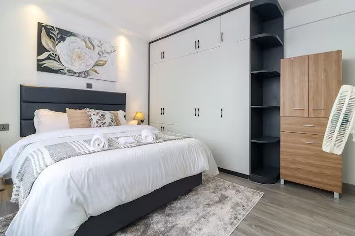 Welcome to our stylish and modern 1BR apartment in Kileleshwa, Nairobi. Relax in the cozy living room or enjoy city views from the private balcony. With comfortable bedrooms, fully equipped kitchen, and en-suite bathrooms with hot showers, our apartment is perfect for up to four guests. Secure parking, 24-hour security, and shared outdoor pool and gym provide added convenience. Perfectly located for exploring Nairobi’s best attractions, it’s an ideal base for business or pleasure. Book Now!