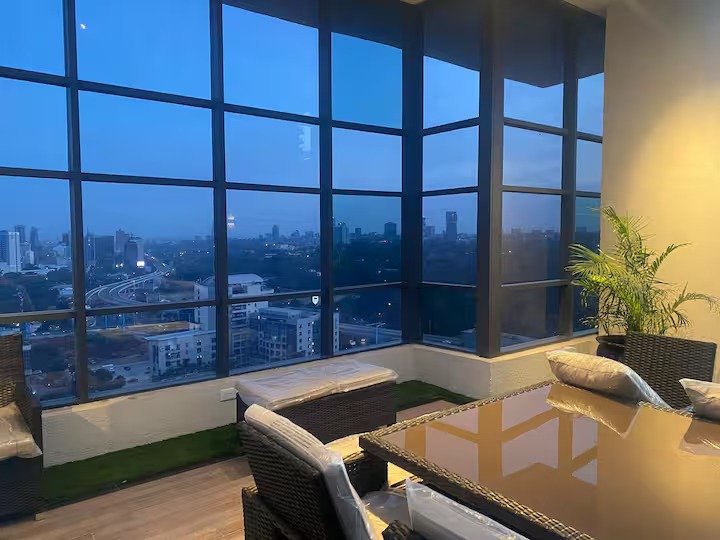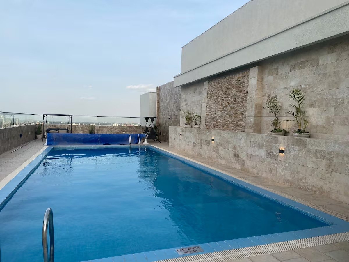 Kennedy’s Apt is located on the 18th Floor of a very modern & new block of Apartments at the heart of Westlands in the city of Nairobi. Its a minute’s walk to the Global Trade Centre (GTC), the tallest bldng in Nrb that will host a number of offices, residential units & the Marriot Hotel. It takes a 3 mins to walk to Westlands shopping centre & 10 mins to the Nrb Central Business District. The views from the Apt are spectacular. The expressway has made the trip from the Airport just 15 mins.