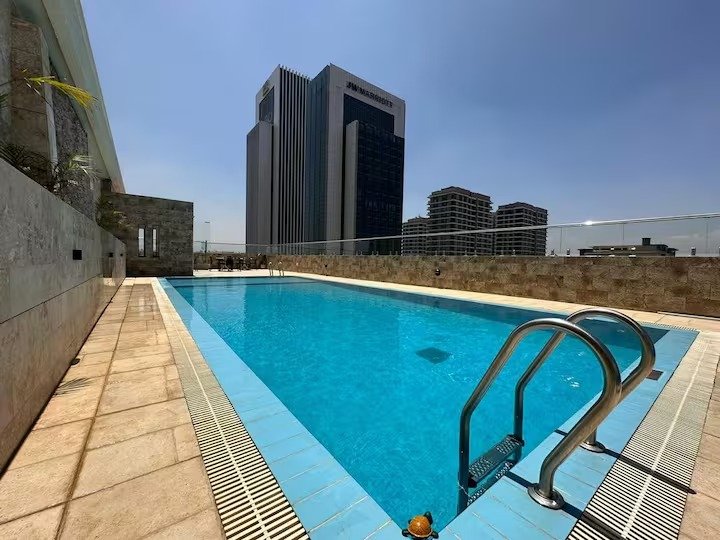 The apartment complex is guarded by security 24/7 and has cctv in the common areas. The apartment has backup generator Incase of any power outage. We have a beautiful barbecue & lounge area at the rooftop, a fully equipped gym and a heated pool.