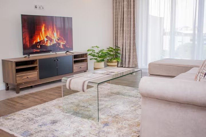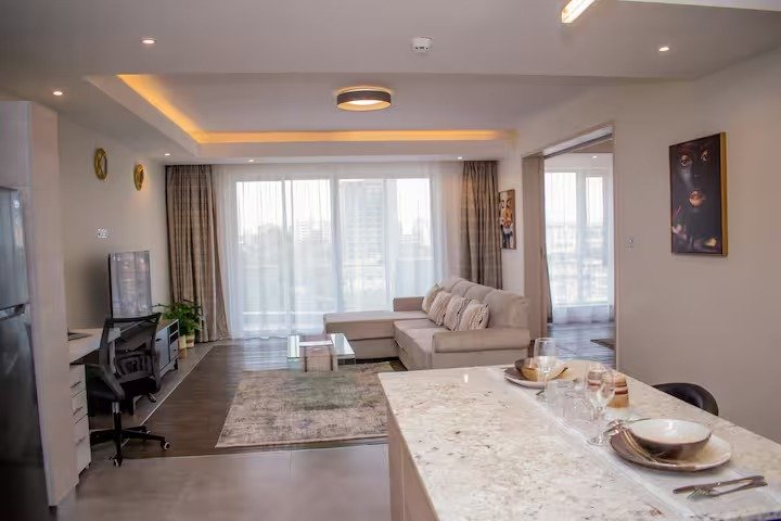 This entire stylish apartment is modern, spacious & comfortable, with one bedroom & en-suite bathroom, luxurious Queen size bed, eloquent dining room, bedroom & lounge Netflix-TV, balcony, kitchen and washing machine area. All amenities provided, including unlimited Fast WiFi and business facilities. Situated in a quiet leafy suburb, but also conveniently close to Westgate, Sarit and Lavington shopping malls, restaurants, business hubs, CBD and few meters walk away from Westlands nightlife.