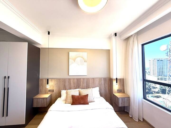 The whole group will enjoy easy access to everything from this centrally located place. In a secure blue zone area. The place has basic amenities well furnished and the best part is the expansive city view very breathtaking at night. There is a roof top pool and gym with a lovely view. A cafe is also about to open soon which makes it very convenient if you do not want to cook on those lazy days.