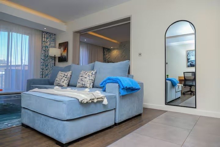 Kick back and relax in this calm, stylish space. Its close to everything, making it easy to plan your visit with en-suite bathroom, eloquent dining room, bedroom & lounge Netflix-TV, balcony, kitchen and washing machine area. All amenities provided, including unlimited Fast WiFi and business facilities. Situated in a quiet leafy suburb, but also conveniently close to Westgate, Sarit and Lavington shopping malls, restaurants, business hubs, CBD and few meters walk away from Westlands nightlife.