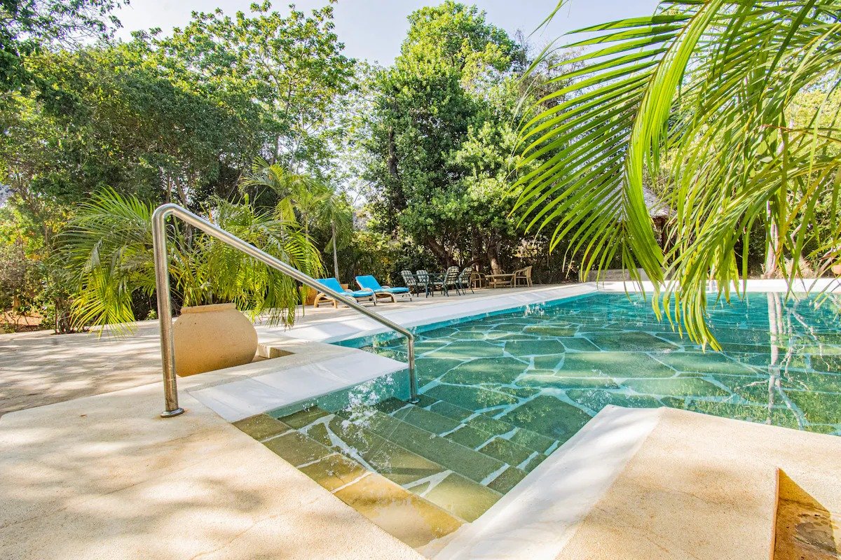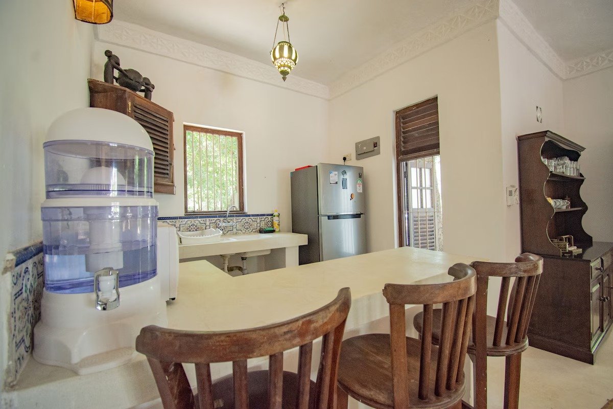 A unique beachfront cottage in Diani, set among indigenous trees and home to wildlife like colobus monkeys, bush babies, lizards, and squirrels. Located just steps from the beach, it offers direct access to a shared pool, garden, and 100m path to the sand.