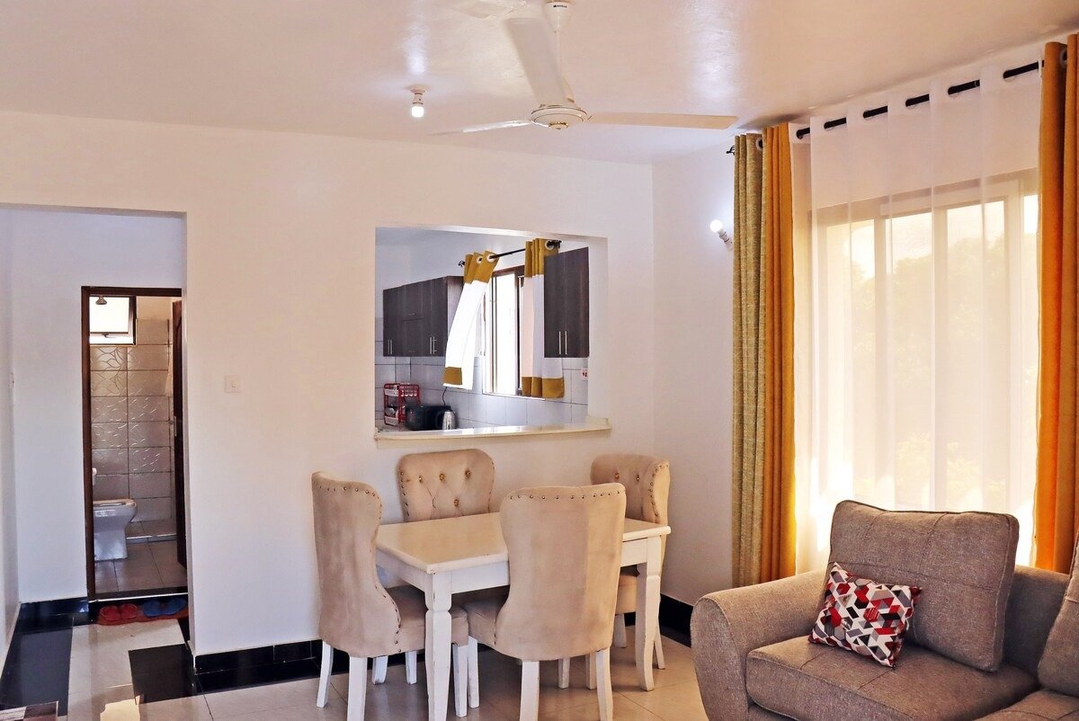 cozy 1-bedroom house in Diani Beach is a modern gem designed for comfort and convenience, ideal for couples or solo travelers seeking a tropical escape. Nestled in the heart of the Kenya coast, this charming retreat features a spacious bedroom with a plush, comfy bed that promises restful nights. The fully equipped kitchen is perfect for whipping up meals, complete with modern appliances and ample counter space.