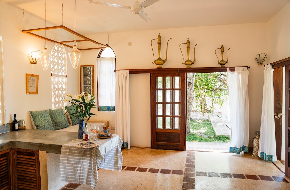 Escape to our enchanting beachfront cottage, nestled in the heart of Galu, Diani. With a private pool, an ample veranda, and a stunning terrace, our tranquil haven promises a restful stay in paradise. Immerse yourself in the coastal breeze, marvel at the spectacle of humpback whales leaping outside the reef during their migration, and partake in world class water sports while enjoying access to a giant pool just step from your private oasis.