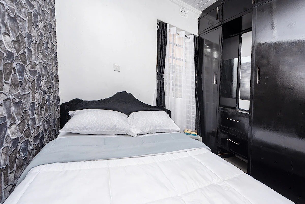 A fully furnished house with appliances for everyday use in a large compound that is shared with me with a manicured lawn. Guests have access to the lawn. There’s a convenience store that is 1.3 Kms from the premises.