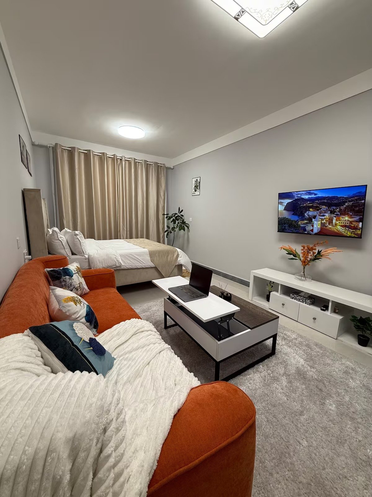 Stylish studio just 700m off Mombasa Road, near Signature Mall and JKIA. Enjoy a well-furnished space with a comfy bed, sleek kitchenette, smart TV, Wi-Fi, and hot shower. Located in a secure, quiet property with easy access to Nairobi’s key areas. Perfect for solo travelers, couples, or business stays.