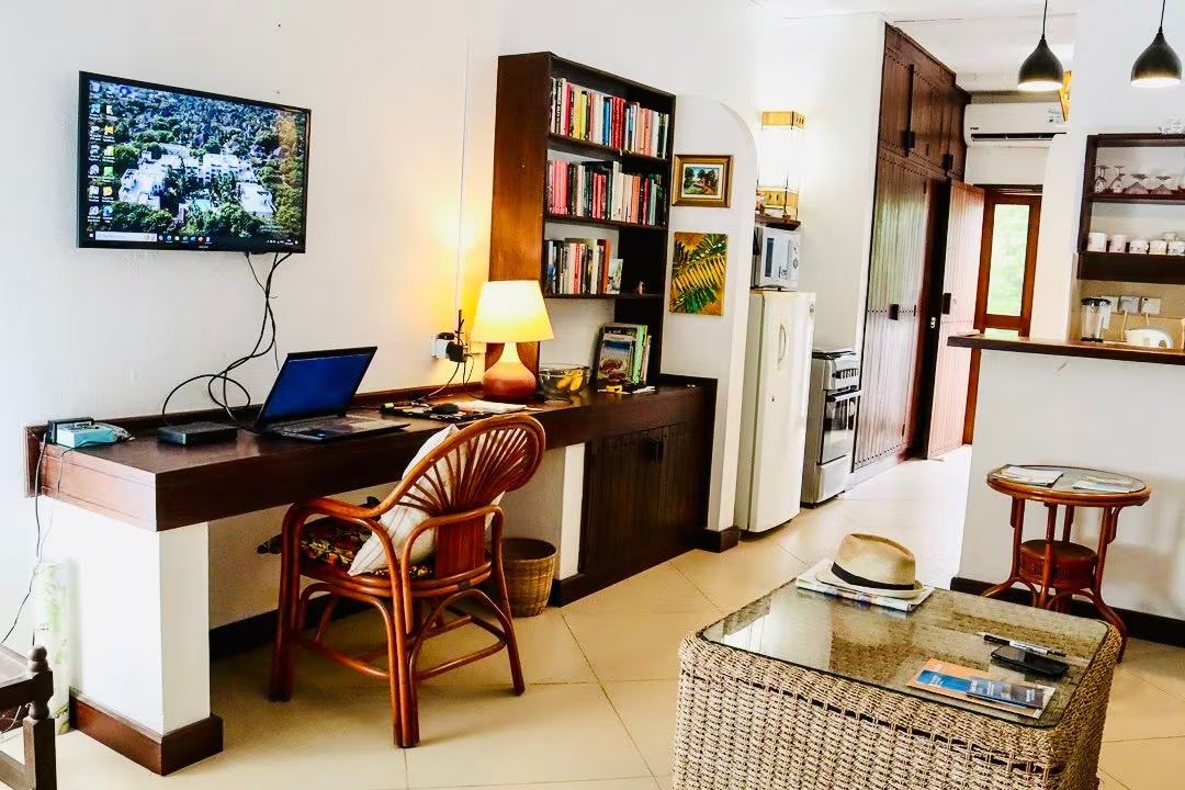 The stunning white sandy beach is only 350m walk from the studio with a smooth road leading up to it.