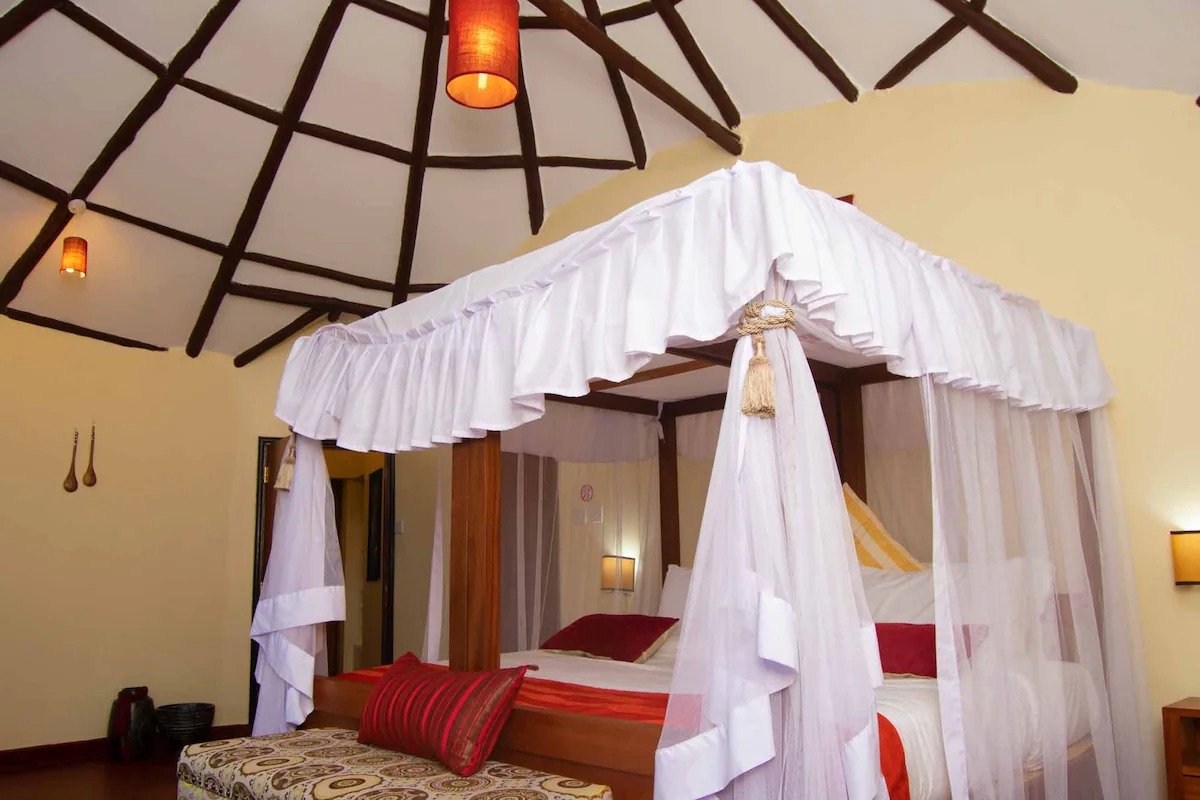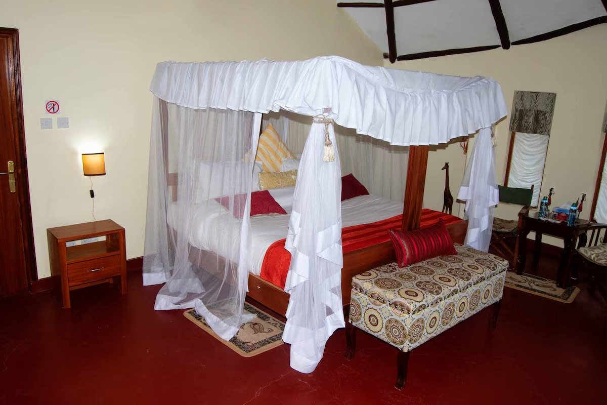 The cottage is a large self- contained home with 3 bedrooms, two bathrooms, a kitchen, a large living room and a beautiful garden. The cottage has a big verandah and both the leaving room and the verandah have a fire place. This cottage is ideal for large families who wish to stay together in one house. It offers all the same privacy, views and comfort as Rondavels. This comes with an option of own cooking or as part of full board arrangement of room service or meals in the main building