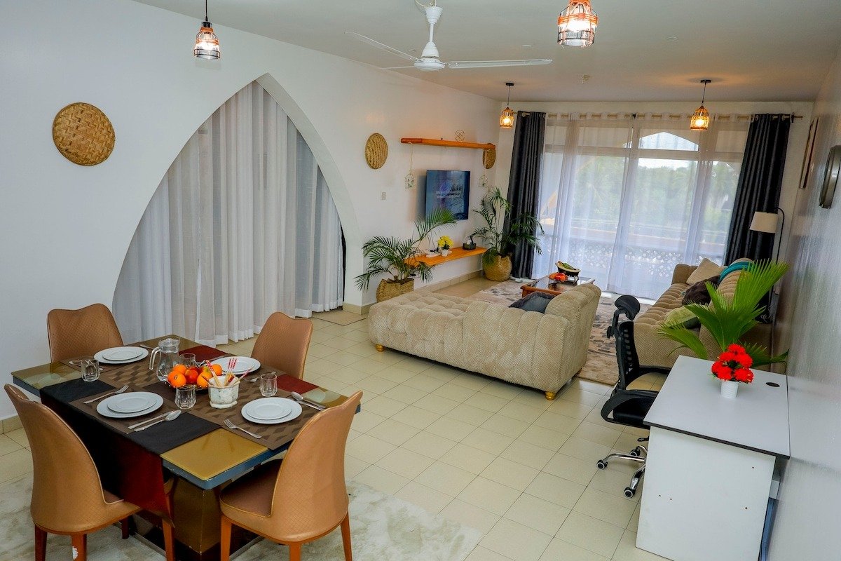 Free access to Diani Reef Hotel’s pool, gym, and private beach amenities