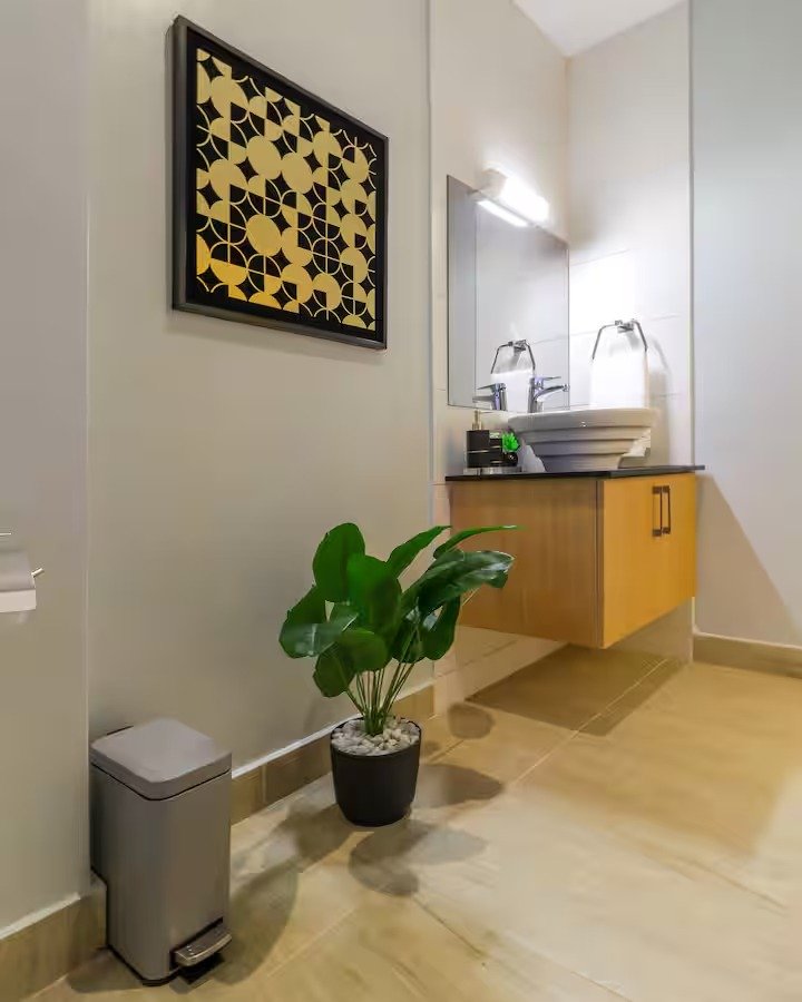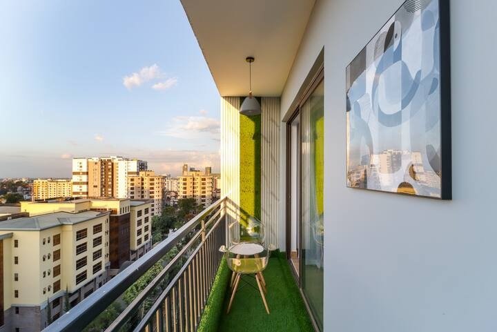 The apartment is set on the higher floors affording guests National Park and Ngong Hills views. Breath-taking views at night from the balcony allow you to relax as you unwind after a long day. This luxury two bedroom two bathroom apartment is replete with amenities that will make you feel right at home.