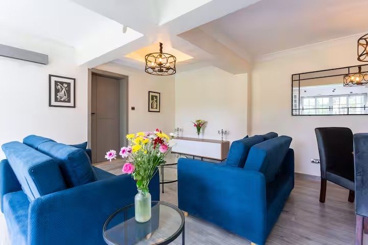 Relax in this stylish, fully-equipped guest house with a lush lawn, shared pool, and calming river nearby. Just a 2-minute walk to the UN & US Embassy and right next to Village Market. Peaceful, central & full of charm.