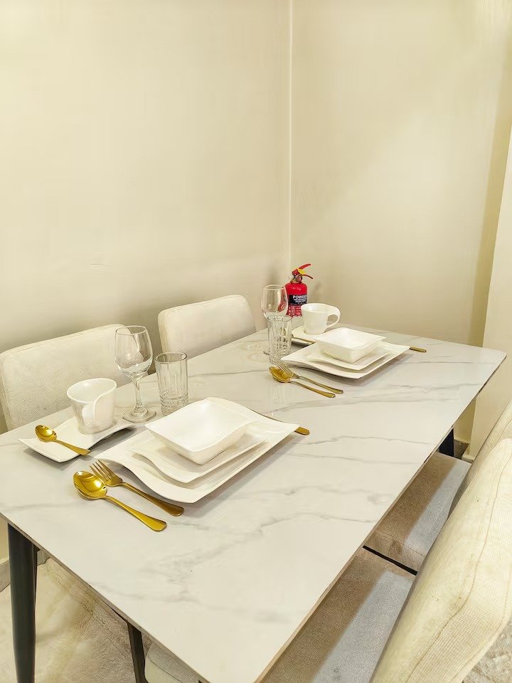 Guests have complete private access to the apartment along with all its amenities. The fully equipped kitchen and cozy dining area make it easy to prepare your own meals. You will also enjoy the convenience of high speed Wi-Fi, a smart TV for your entertainment, and secure entry with a simple self-check-in process assisted by the onsite guard. The apartment is situated close to supermarkets, restaurants, and public transport links, ensuring that daily errands and outings are hassle-free.