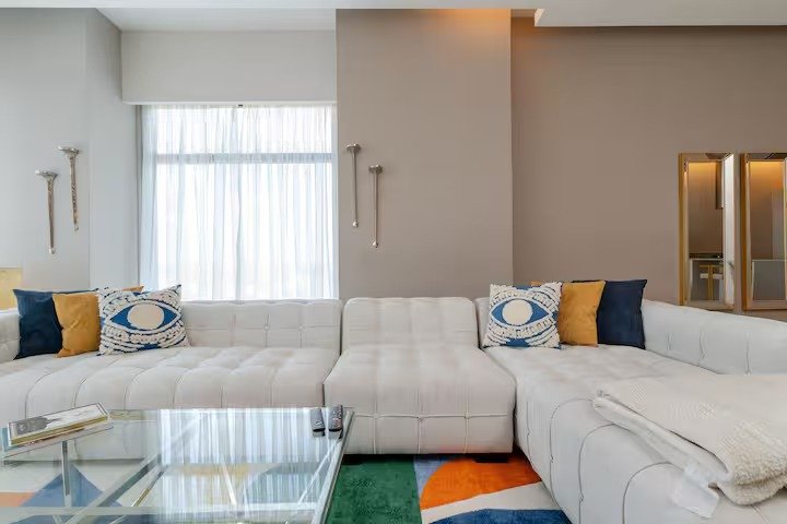 * 🛋️ Elegant living room with large windows and panoramic city views