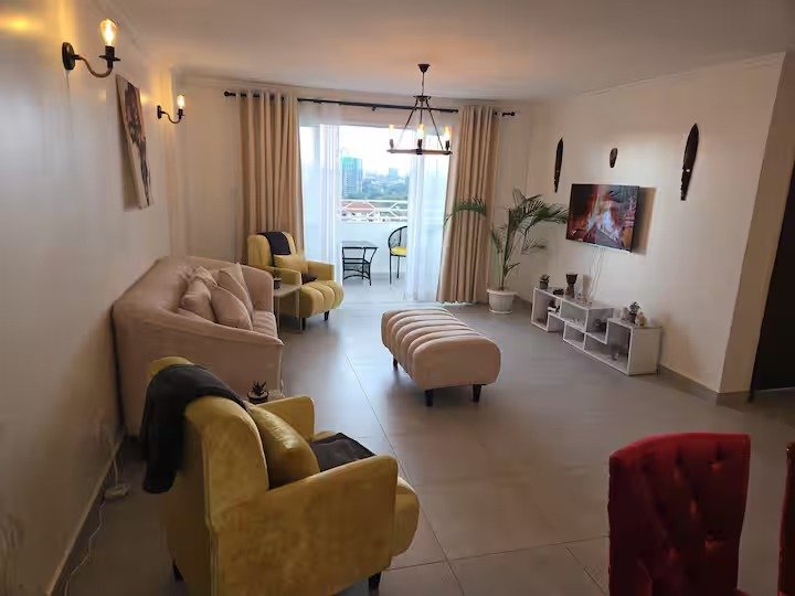 Located in peaceful, yet central Kileleshwa, this spacious, serviced apartment is your home away from home—just 5 minutes to Westlands, 8 to Kilimani, and close to Nairobi Museum, Nairobi National Park, and more.
