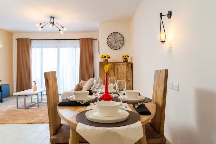 Your blend of comfort, style, and convenience weather on business or leisure, short or long term stay! Feel the warmth and comfort of this spacious 2BR apartment located in the heart of the city’s vibrant zone, offering serene city views and proximity to entertainment, dinning and shopping hubs. Featuring modern elegance, enjoy seamless internet connectivity, high-end finishes, a fully equipped kitchen, a pool, modern gym, a dedicated prayer space and plush double beds for your ultimate comfort!