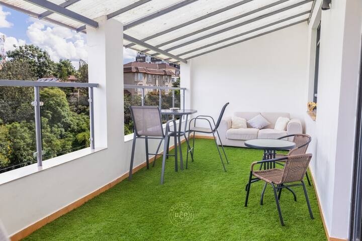 Enjoy a stylish experience at this centrally-located place. Modern apartment. with Skyline views that offer the ultimate privacy yet green serene views in the heart of Nairobi. The apartment block, has a pool, gym and ample parking.