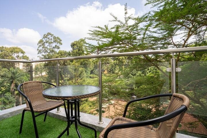 Winchester garden apartment is a modern newly built apartment which is suitable for both long and short stays, either for work or fun. It’s very spacious with large windows giving a beautiful view of our amazing Nairobi river and nature of trees birds etc from the bedroom balcony and living room balcony.A well equipped kitchen which features modern appliances such as full oven with extraction hood. Hence making it ease for preparing your favorite meals.