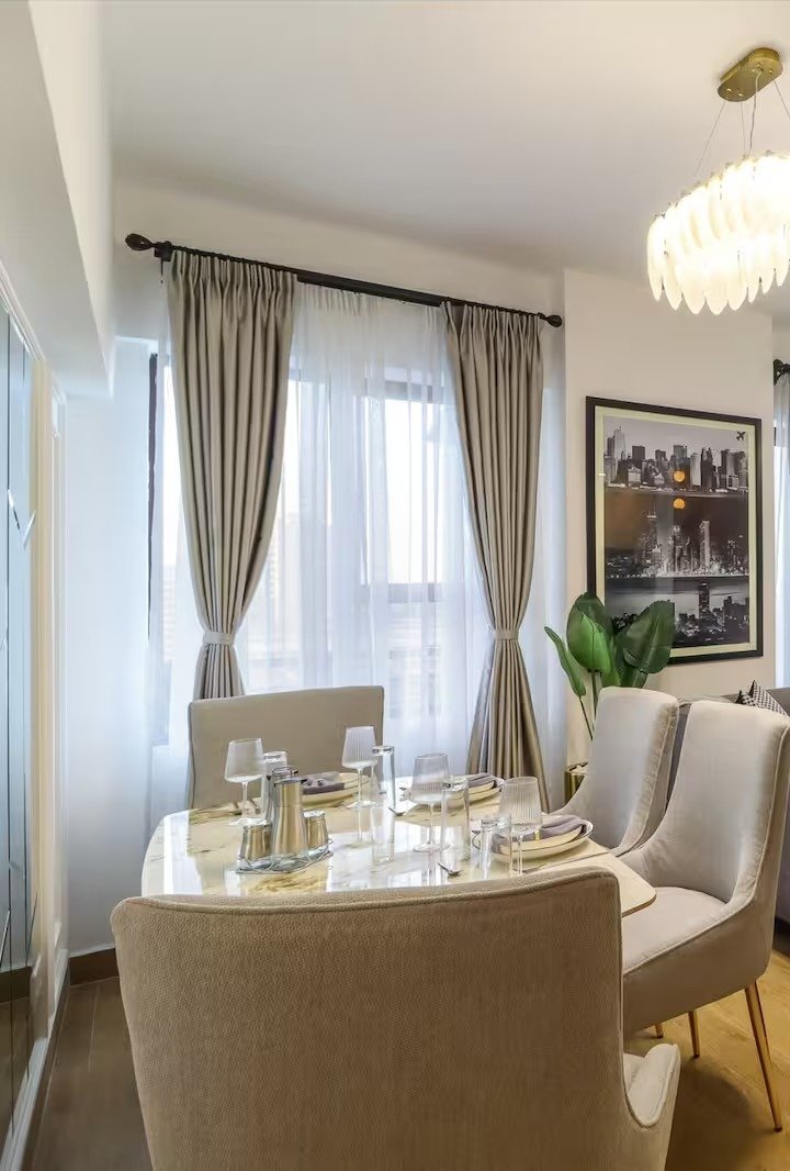 The apartment is set on the higher floors affording guests National Park and Ngong Hills views. Breath-taking views at night from the balcony allow you to relax as you unwind after a long day. This luxury two bedroom two bathroom apartment is replete with amenities that will make you feel right at home.