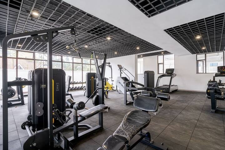 4K screen with Netflix & Prime to unwind with high speed internet. A fully fitted kitchen with a coffee maker, coffee, blender, a washing machine, cleaning services and access to a lounge, play area, swimming pool, gym and a roof top garden
