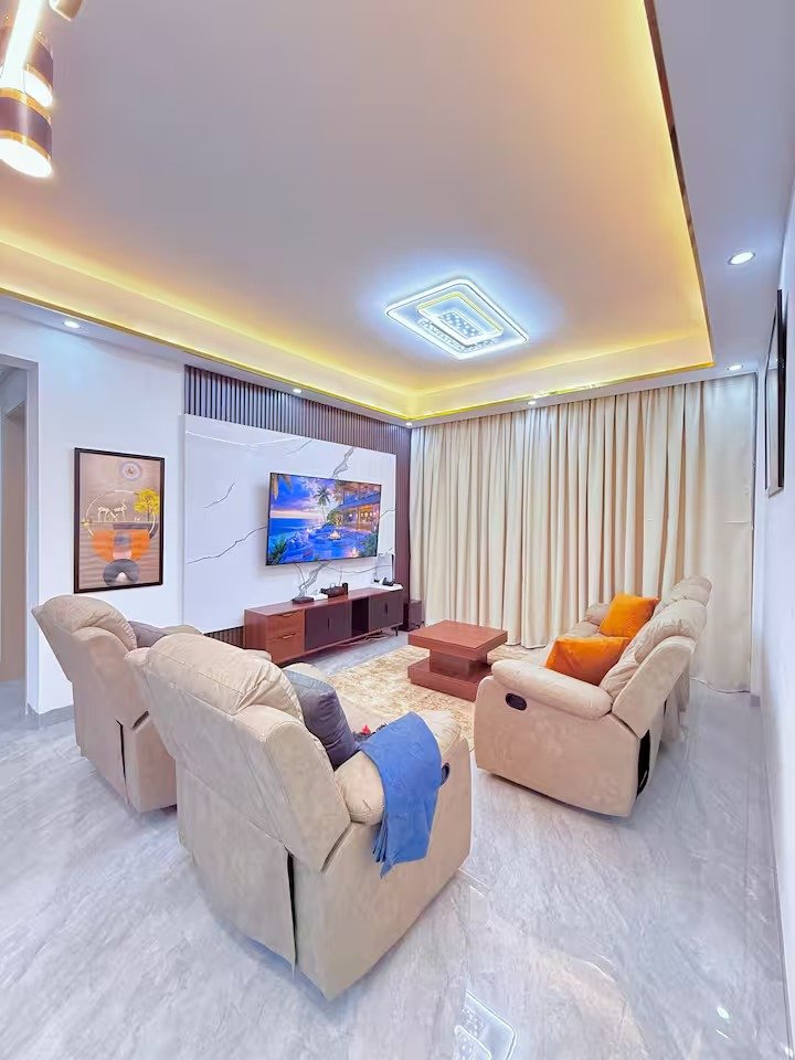 The apartment features, A fully equipped kitchen ideal for home cooked meals, Comfortable & cozy beds to ensure restful nights, every detail has been curated to elevate your stay.