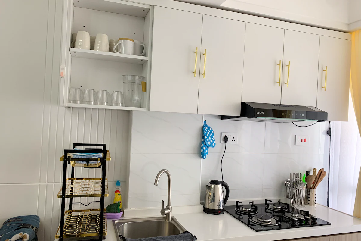 Centrally-located on the 14th floor in the heart of Kilimani, you get a perfect a view of the beautiful city landscape. Each space provided has a colorful and easy ambience. The kitchen is fully equipped should you choose to cook a meal or fix a drink. The living room and the bedroom are tastefully furnished with your comfort and hygiene in mind.
